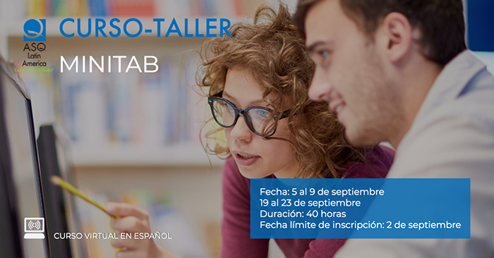 ASQ Latinoamérica los invita al curso taller de Minitab, el cual se impartirá del 5 al 9 de septiembre. La fecha límite de inscripción es el 2 de septiembre de 2022. Este curso se impartirá en formato virtual, a través de la plataforma Webex.